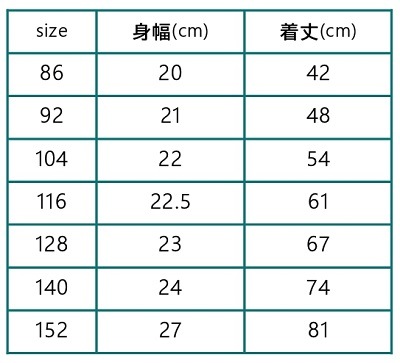 身幅(ウエスト部分)は前身頃をゴムを伸ばさず、着丈はすそまでの長さです。