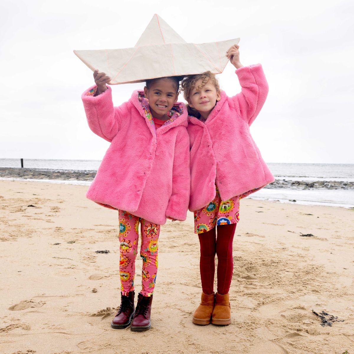 【yf25gpa286】 レギンス パンツ マディリメイクプリント オーガニックコットン ピンク【86-152cm】