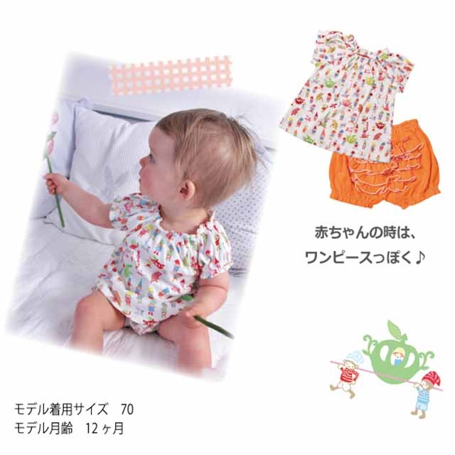 コットン100%で素肌に気持ちよく、また首周りはゴム仕様なのでスッポリ簡単に脱ぎ着できて、ちょっぴりフリルがたまらなくかわいい!