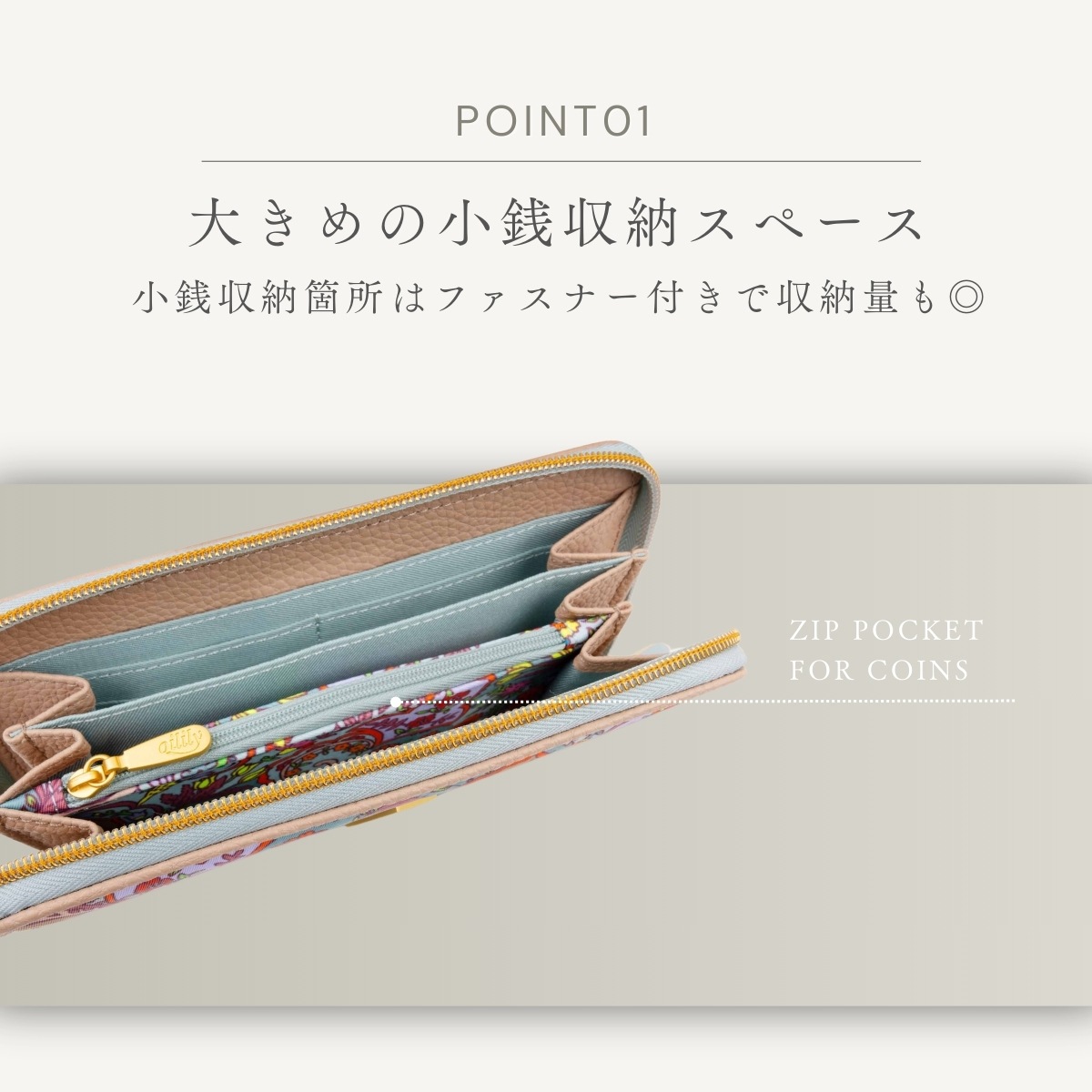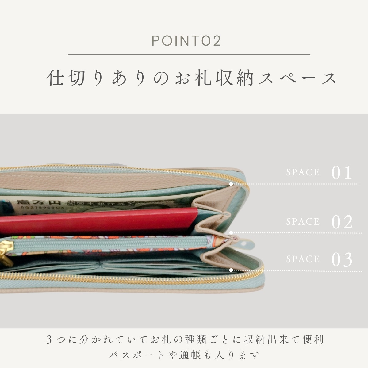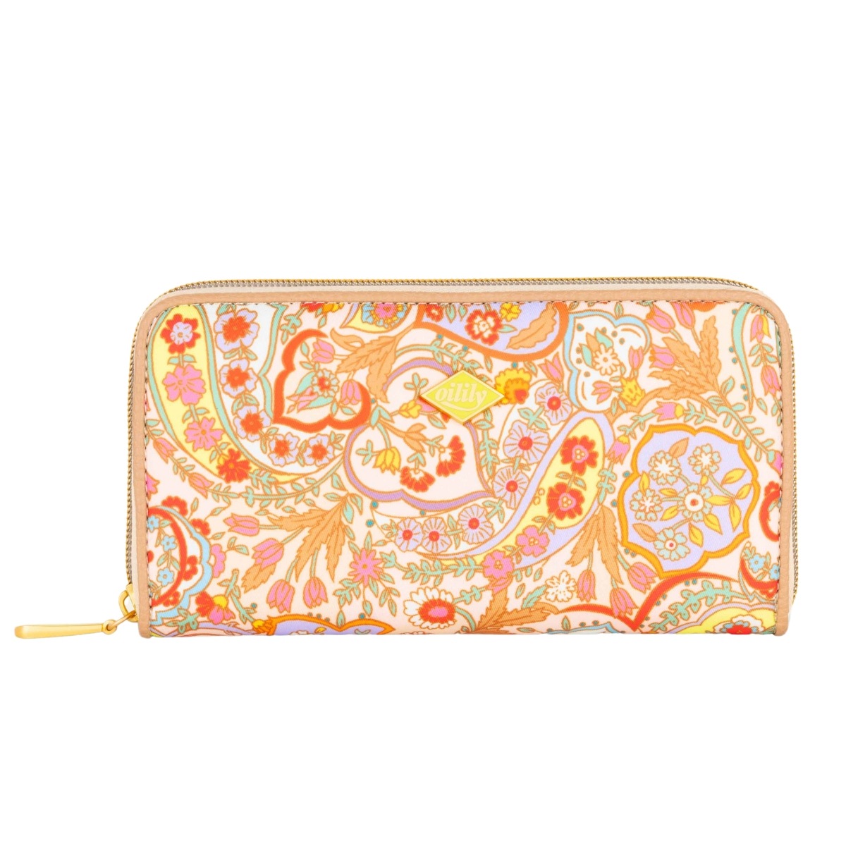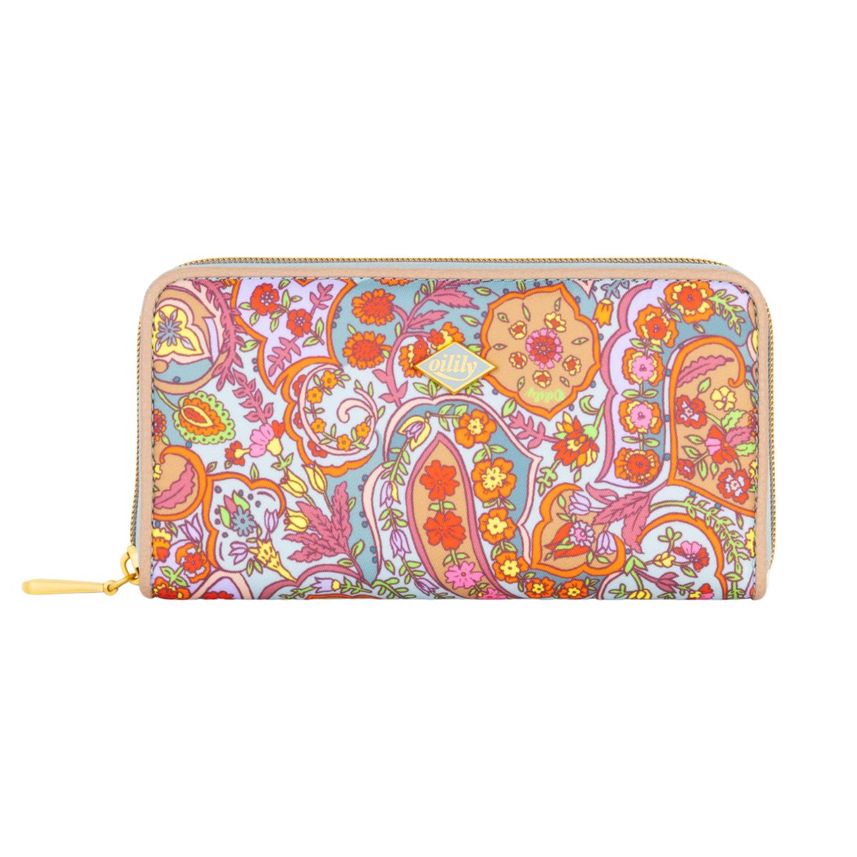 中は3つに分かれていて、お札を用途別に入れることも可能。中央の小銭入れは、ファスナー付き。 この部分に同じフラワープリントでアクセントを付けているのがさすがオイリリーですね! カードを入れる部分は2か所あり、合計8枚とたっぷり収納。さらに通帳やパスポートも入る抜群の収納力で重宝します。 キャッシュレスが進んでもお札をきれいにそのまま収納できる長財布は重宝します今シーズンのペイズリー柄は軽やかに明るく登場。中は3つに分かれていて、お札を用途別に入れることも可能。中央の小銭入れは、ファスナー付き。この部分に同じフラワープリントでアクセントを付けているのがさすがオイリリーですね!カードを入れる部分は2か所あり、合計8枚とたっぷり収納。さらに通帳やパスポートも入る抜群の収納力で重宝します。キャッシュレスが進んでもお札をきれいにそのまま収納できる長財布は重宝します。
