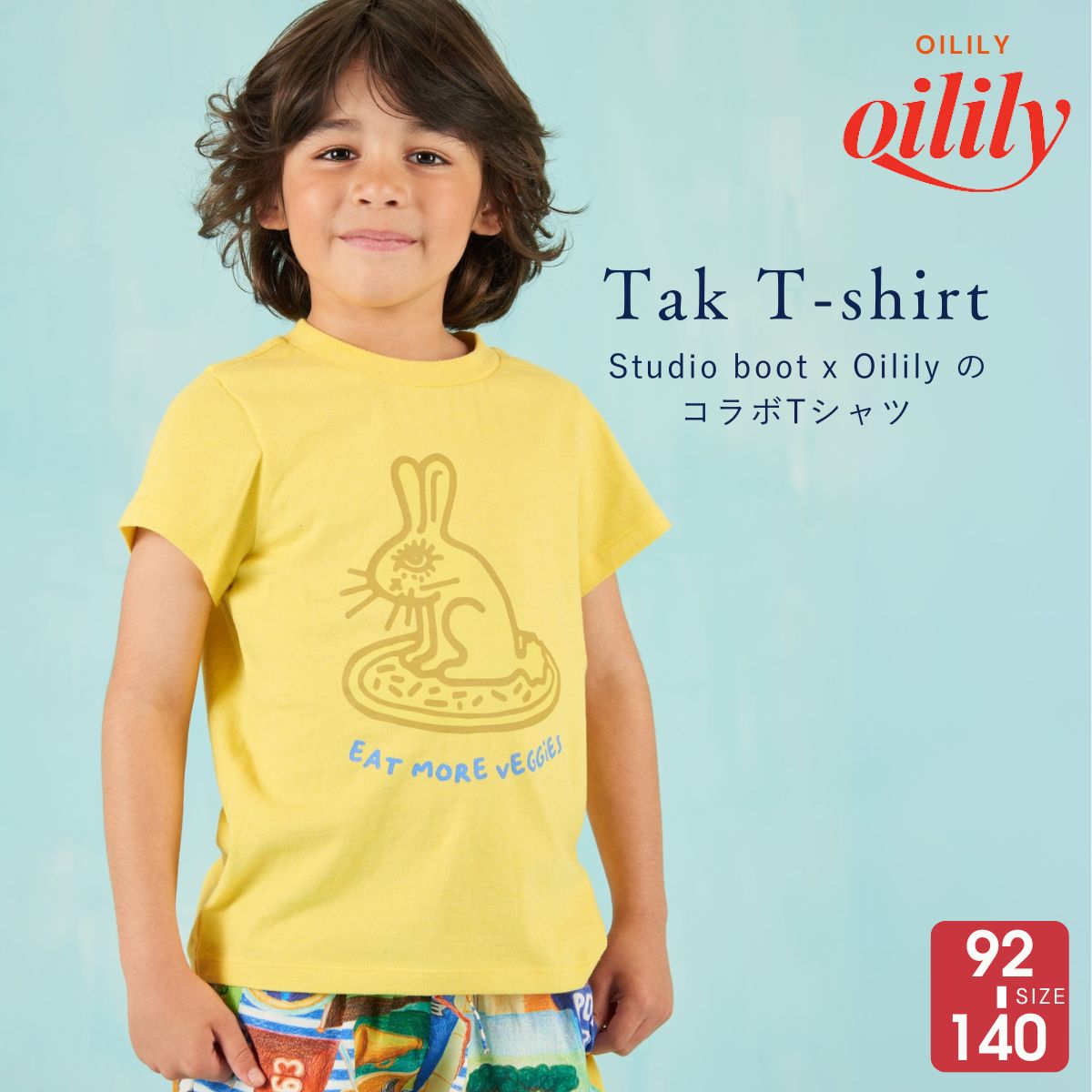 StudioBootとOilliyのコラボTシャツ。野菜をモグモグ食べるウサギが描かれています。さあ!うさぎちゃんと一緒に頑張ってお野菜を食べよう!男女兼用で着用いただけるユニセックス仕様です。Studio Bootとは…エドウィン・ヴォレベルフがペトラ・ヤンセンがデザイナーをつとめるオランダのスタジオ。アムステルダムのステデリック美術館、ニューヨークのMOMA、ミラノのサローネ・デル・モービレとのコラボレーションをするなど今後も活躍が期待されています。