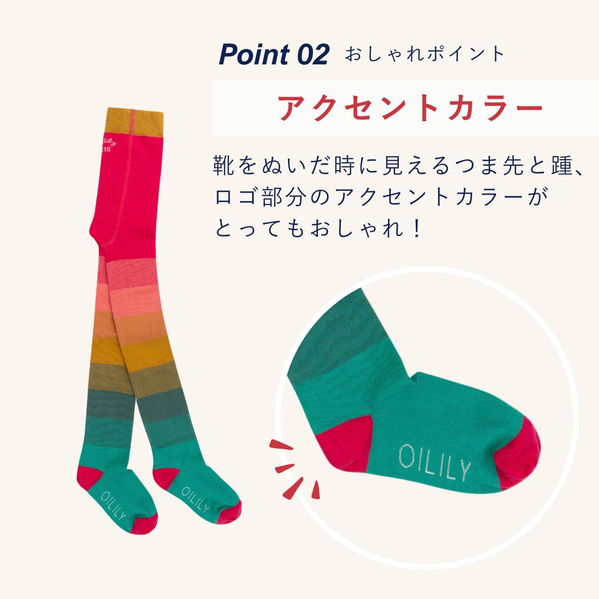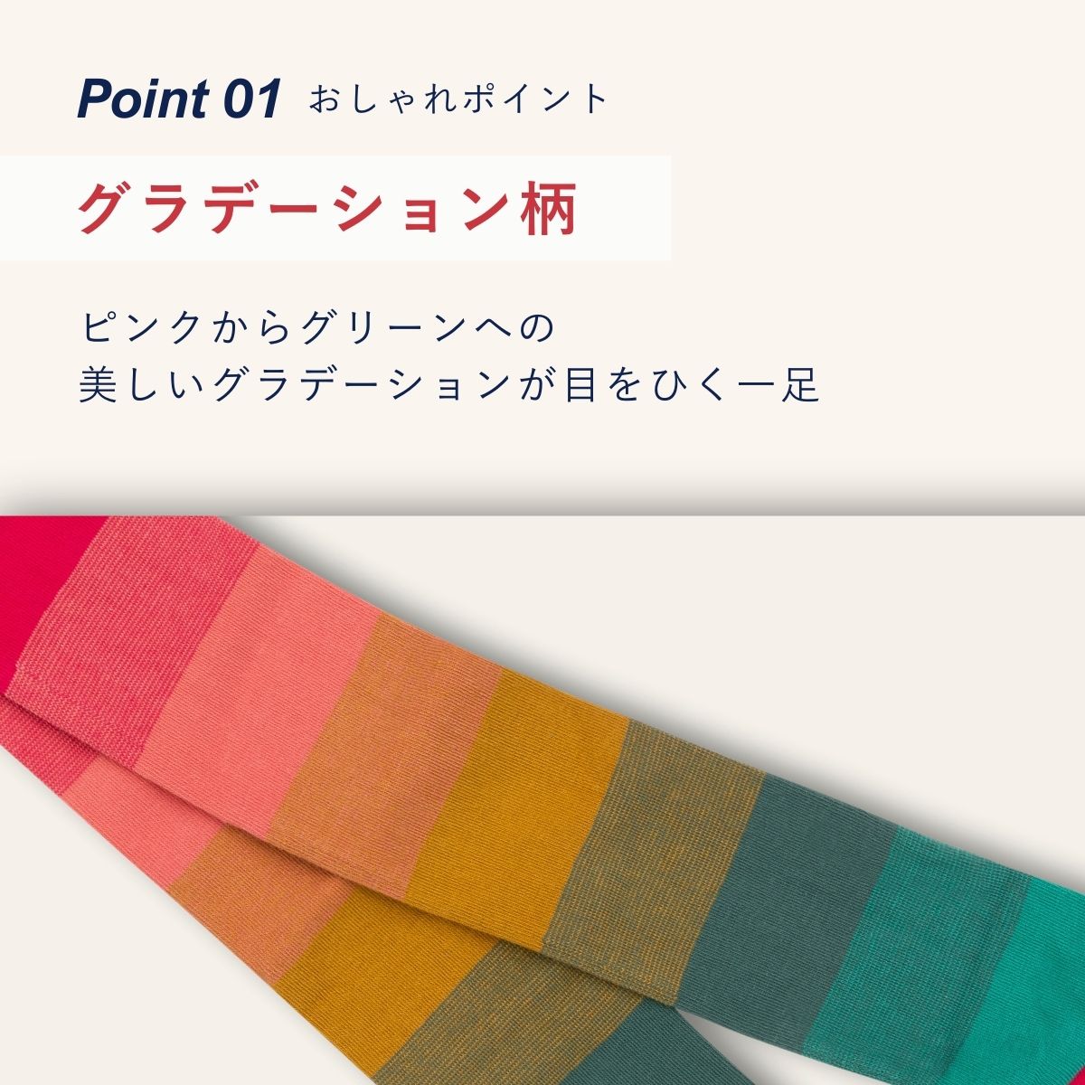 ピンクからグリーンへのグラデーションが美しいタイツ。
