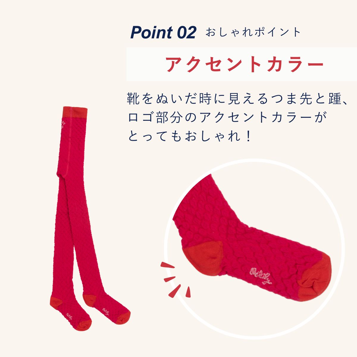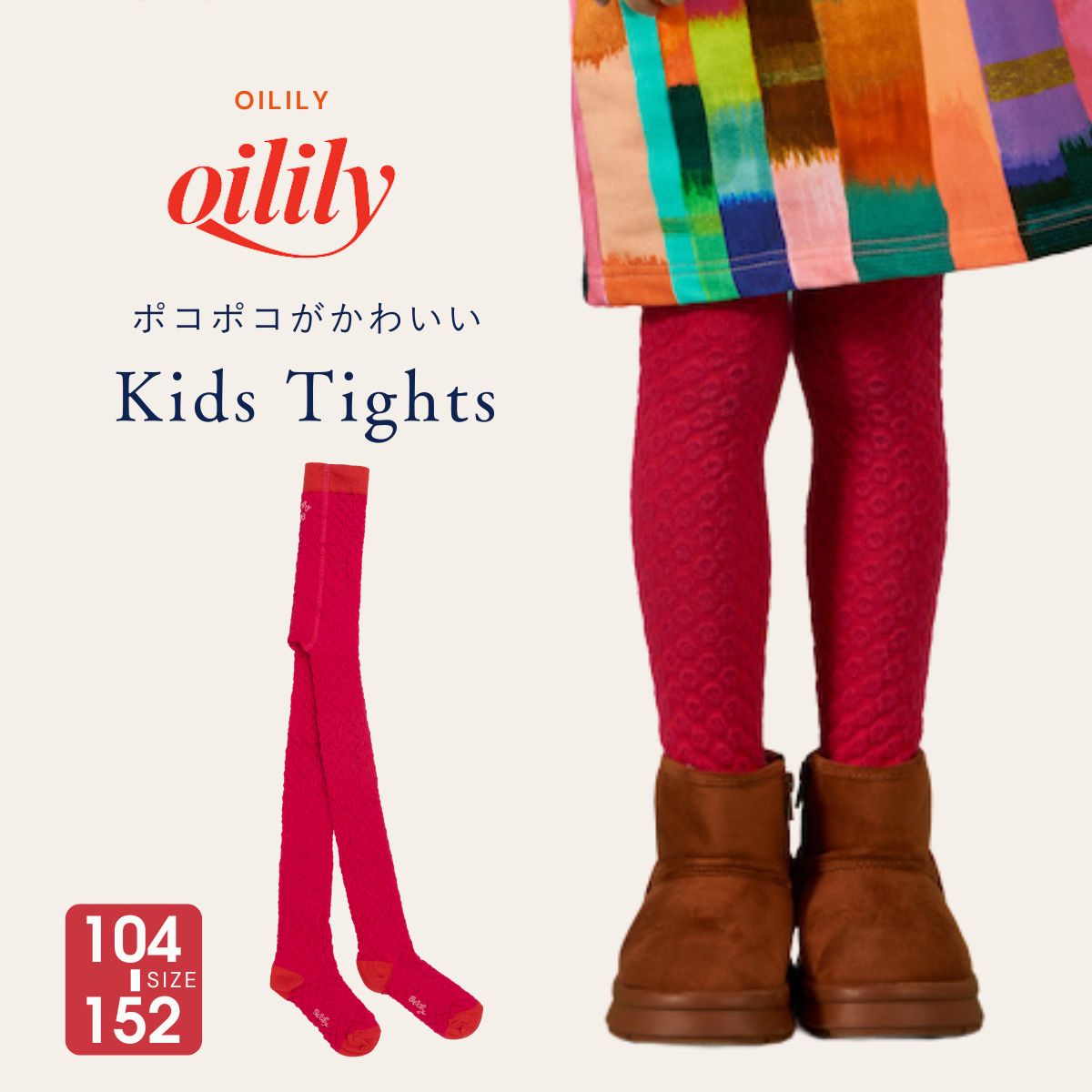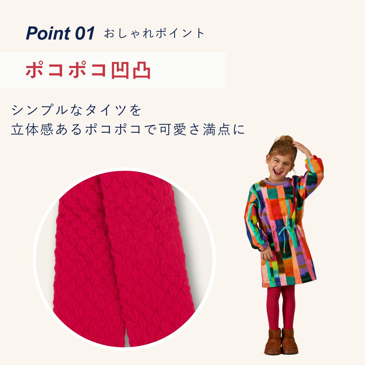 ポコポコがかわいい3D効果のあるタイツです。ちくちくしない優しい肌触りです。