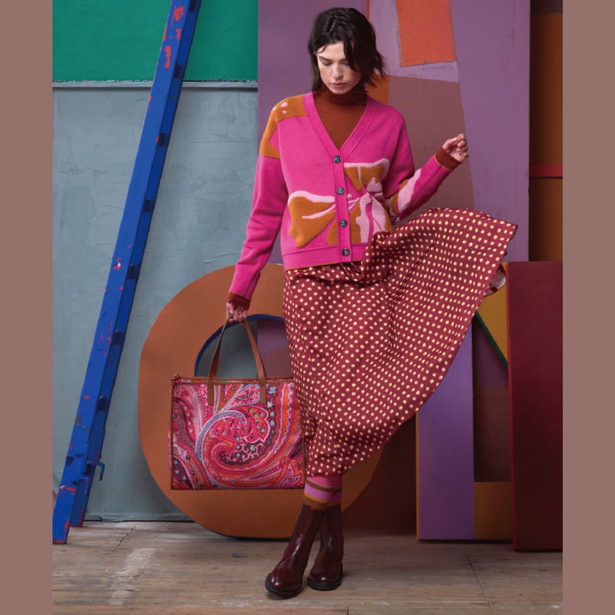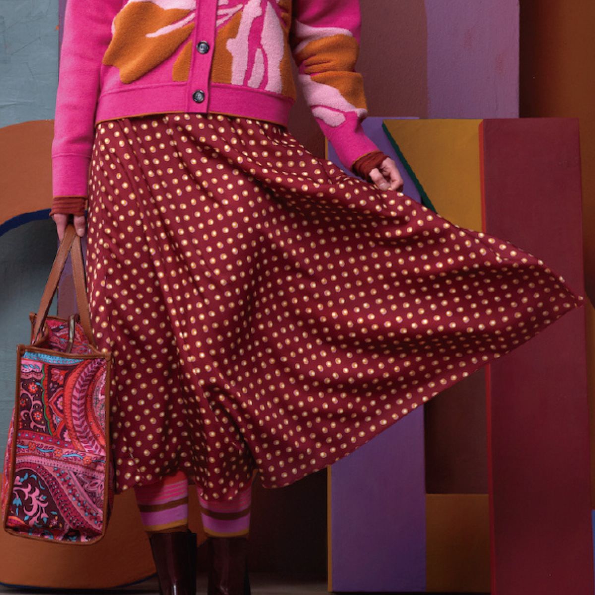 オランダでデザインし、イタリアで丁寧に作り上げたスカート。贅沢に使用した生地が流れるようなフレアラインをリズミカルに演出。裾にボリューム感があるので、くるぶしより少し上の着丈で抜け感を出しました。ウェストはゴム仕様で快適です。