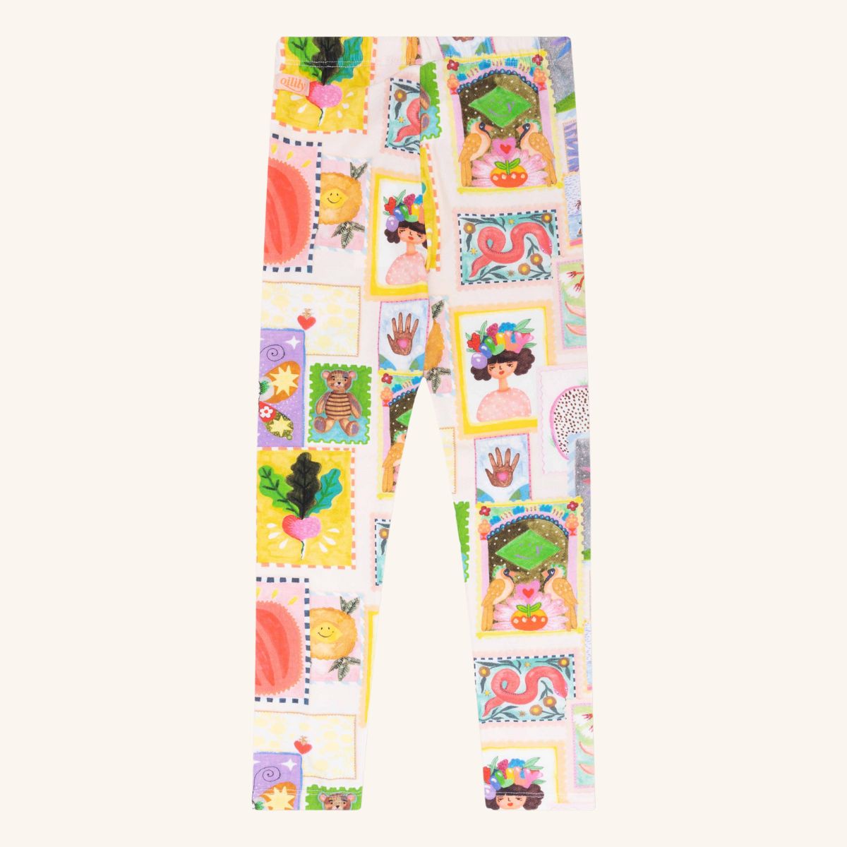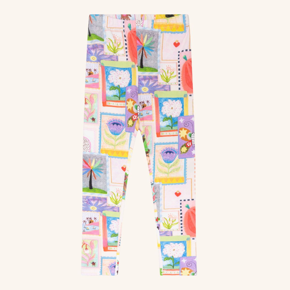 旅先の切手をコラージュしたレギンス。