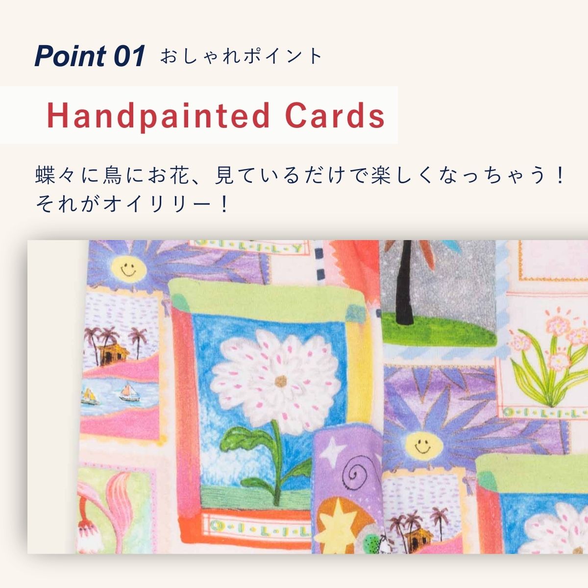 オーバーサイズのトップスに合わせたり、ワンピースやスカートに合わせたり、柄ON柄でもかわいくきまるのがオイリリーです!