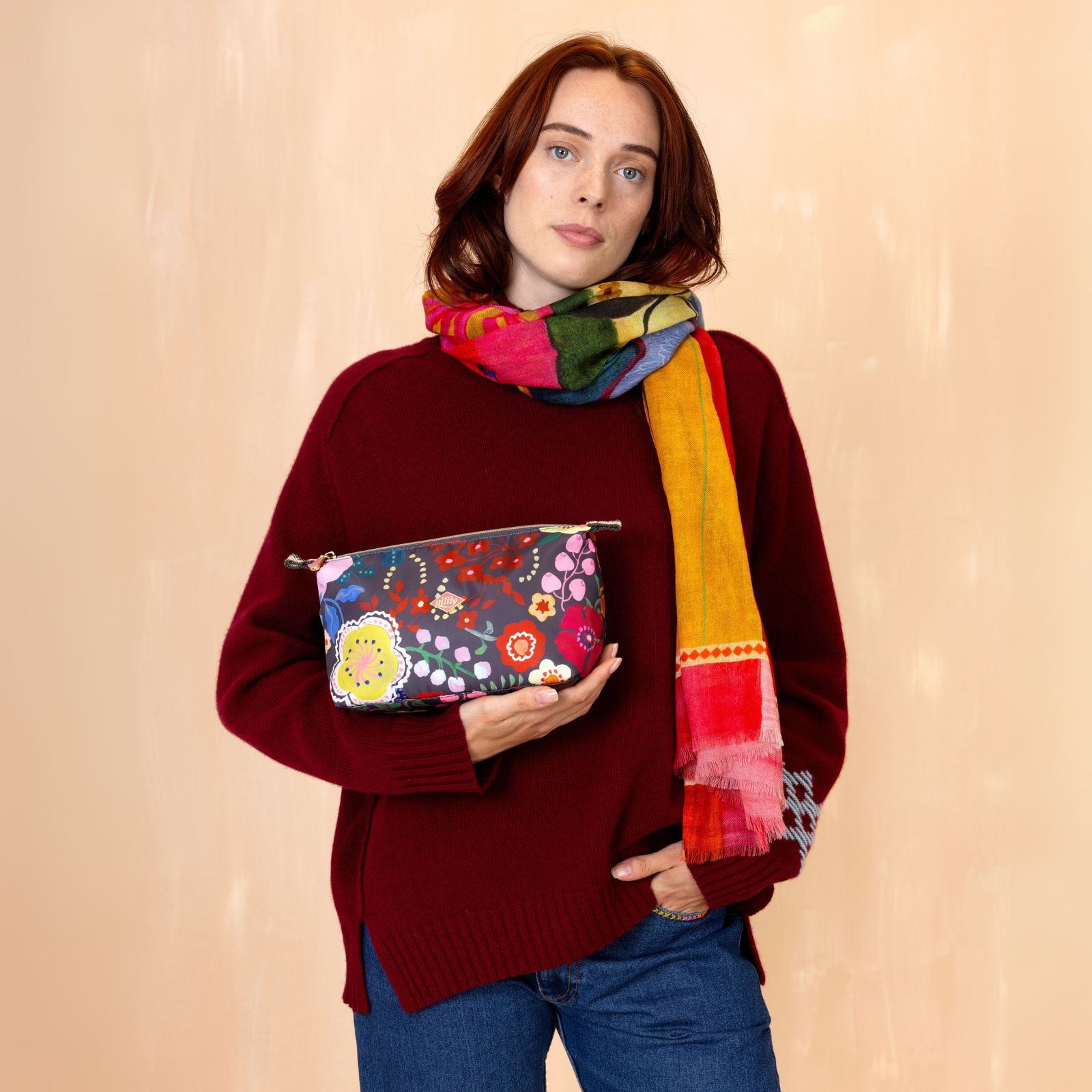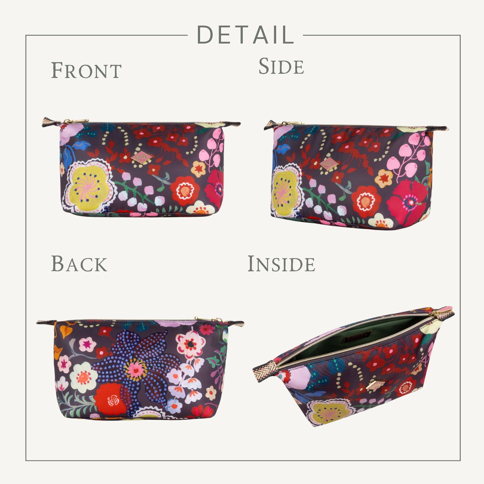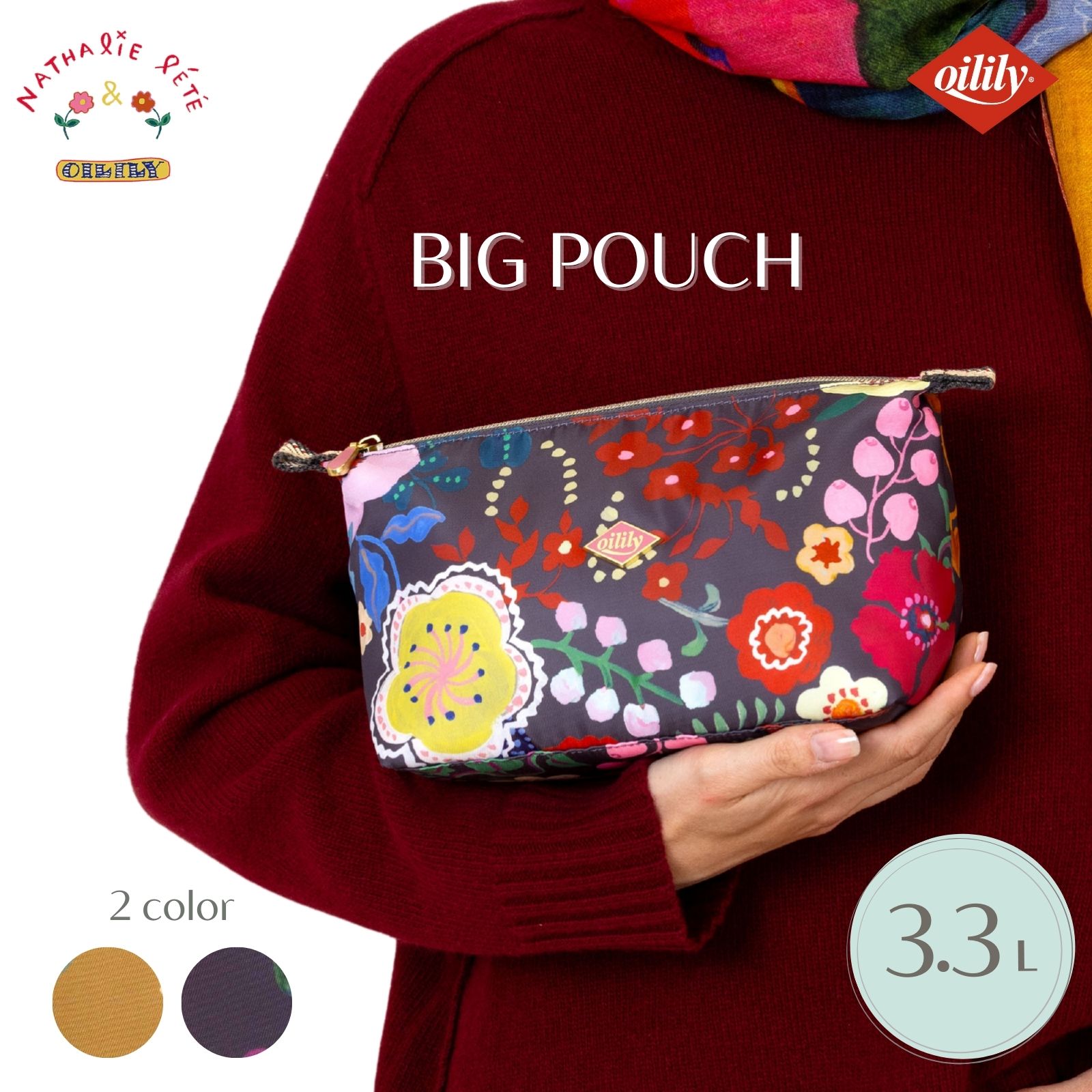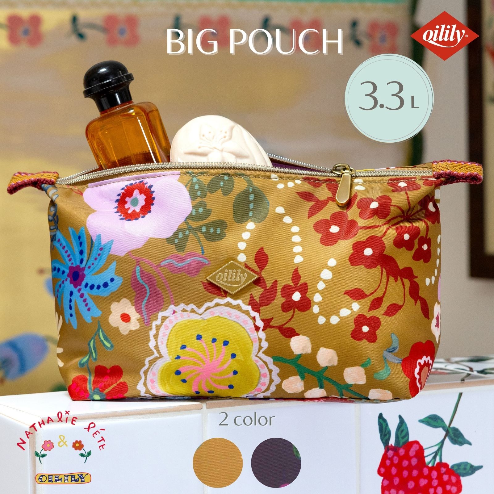 フランス人アーティスト、ナタリー・レテによる「Tide Spirits」プリント。伝統的な職人技とフォークロアの美しさを称えたオイリリーのためにハンドペイントされたプリントの3.3Lの大きめサイズのコスメポーチ。