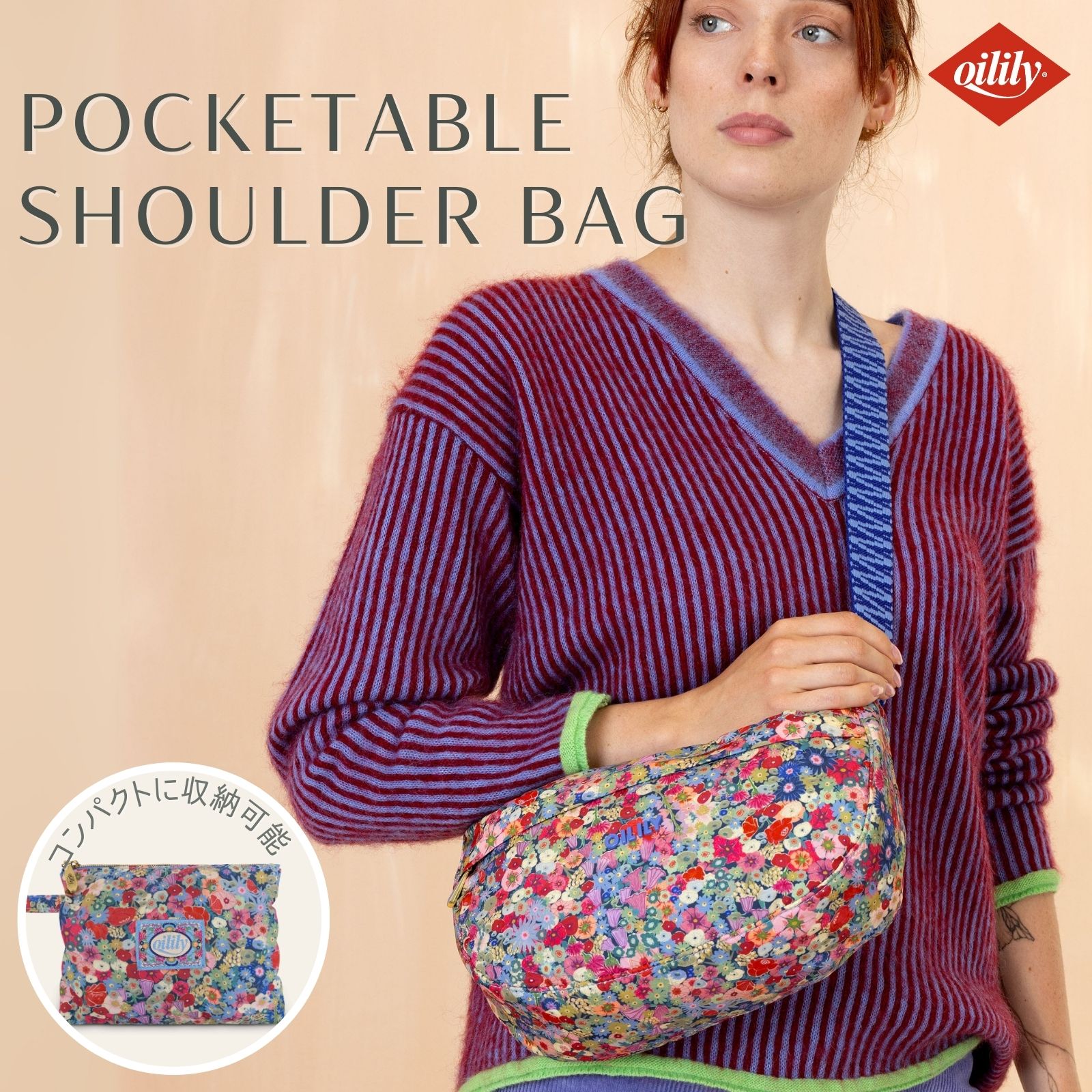 楽しくて実用性抜群の折りたたみ式ショルダーバッグ!コンパクトに折りたためるフルサイズのショルダーバッグです。 取り外し可能なジッパー付きポーチにバッグを折りたたんで収納できます。