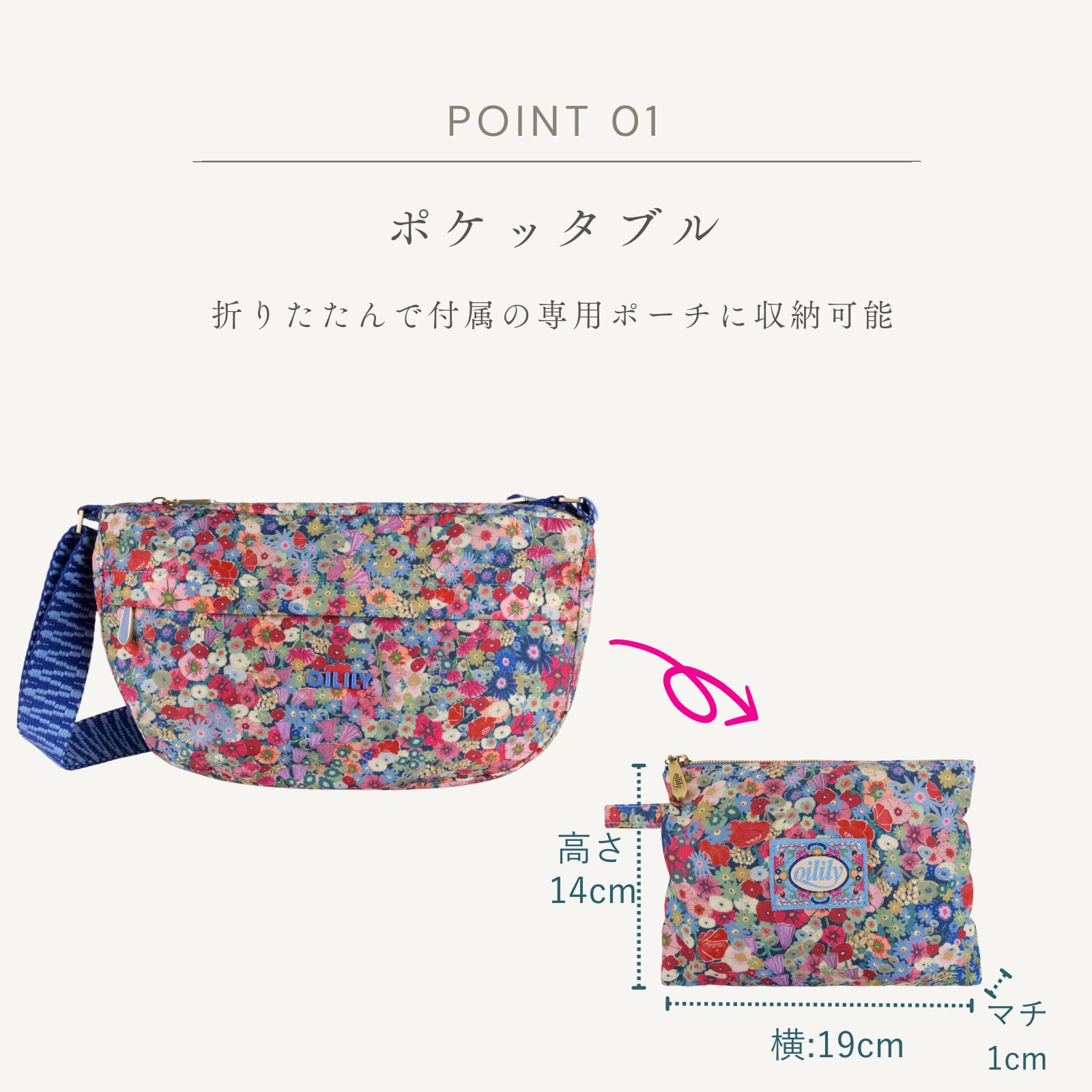 【oil1643】ポケッタブル クロスボディバッグ 花柄 小花 スコティッシュ ガーデン 折りたたみショルダー