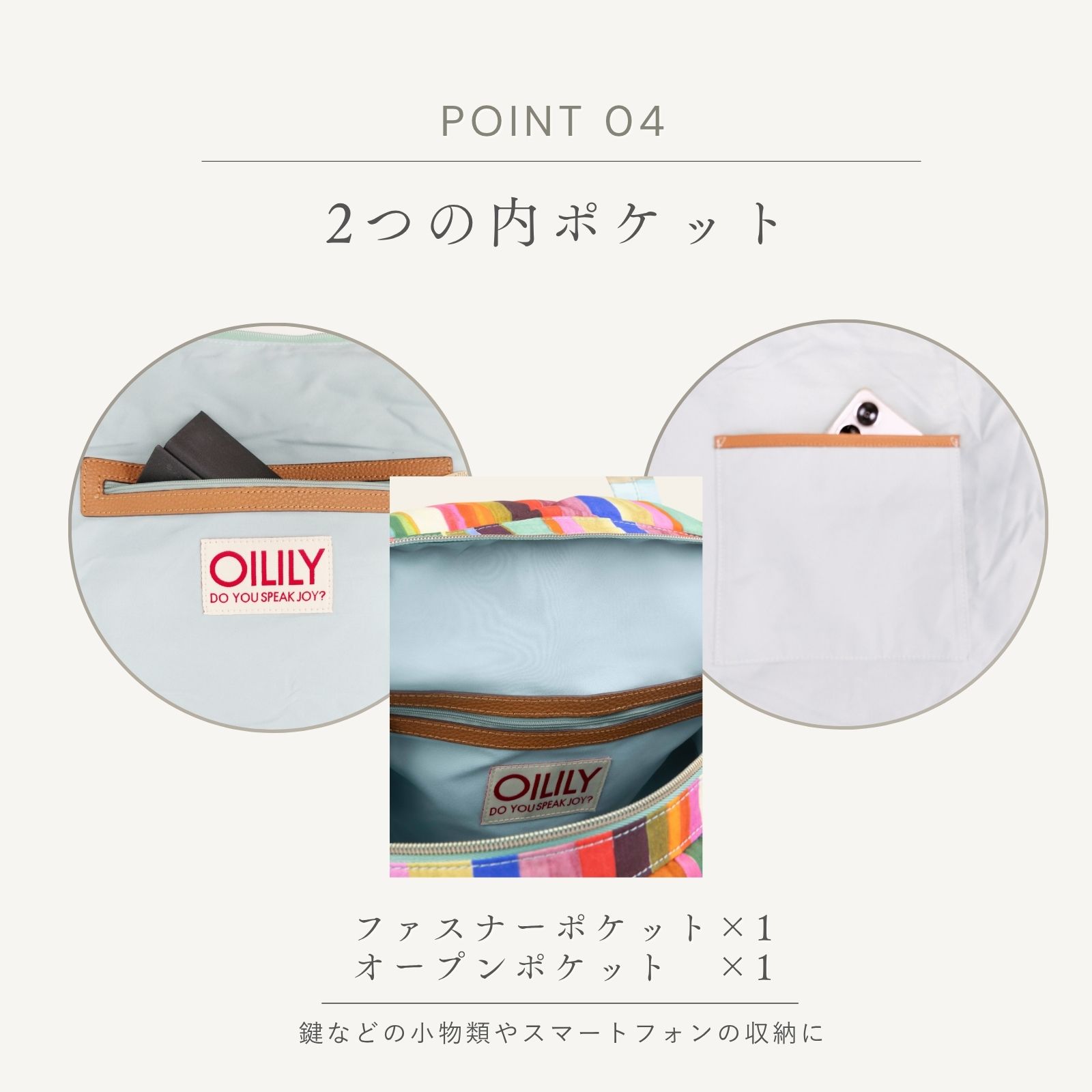 - ジッパーとベルクロ留めのメインコンパートメント