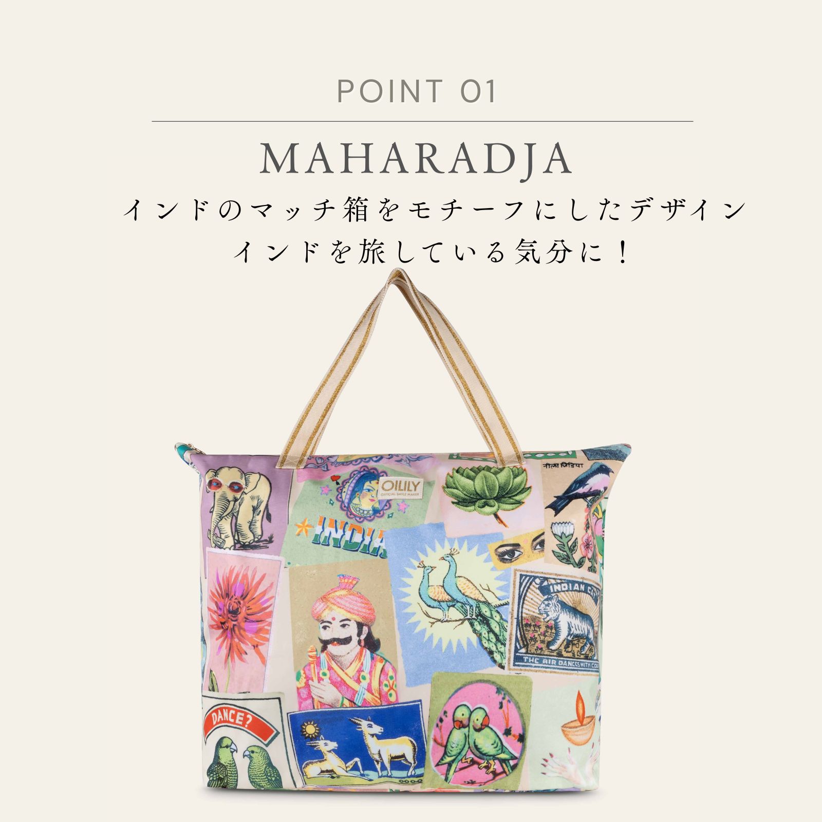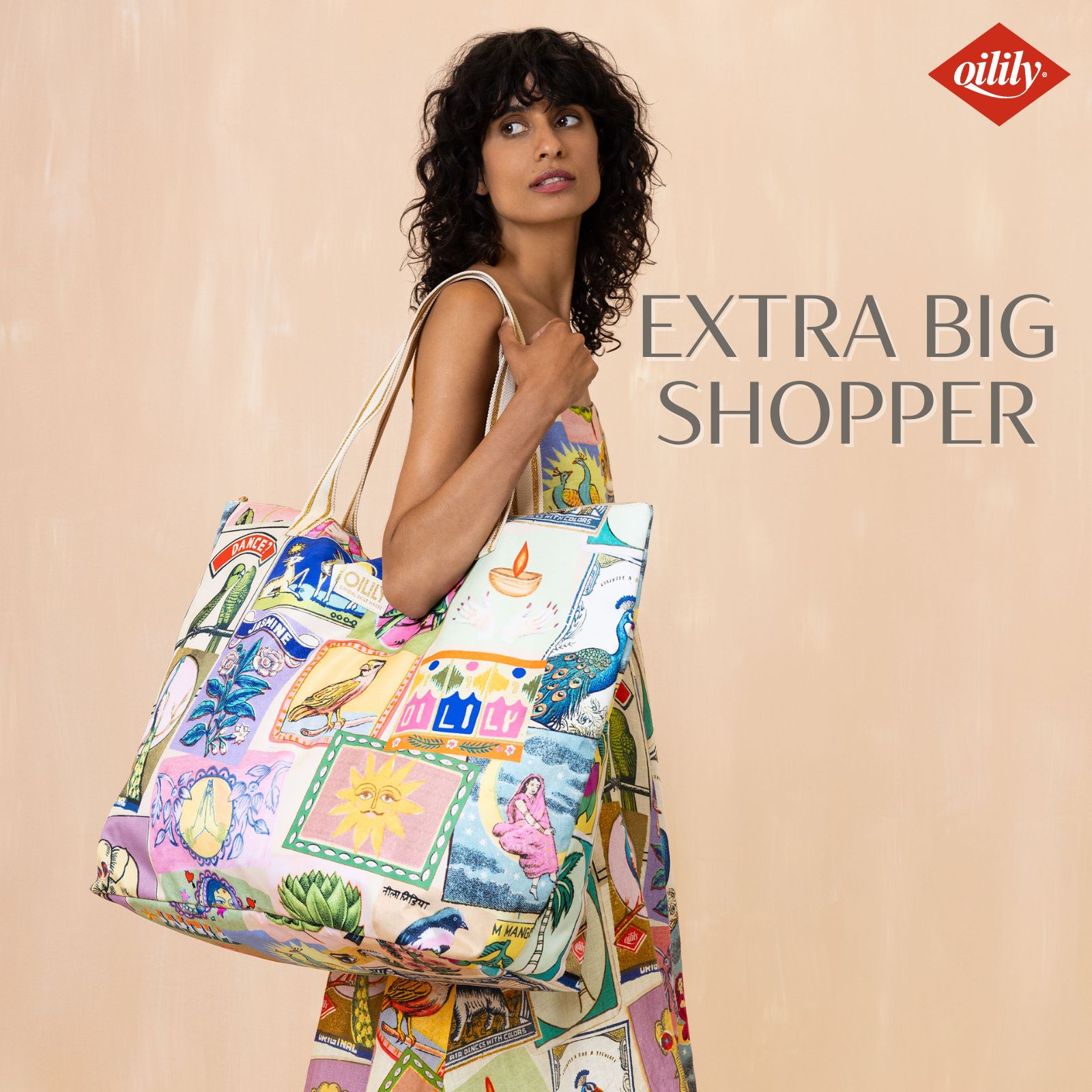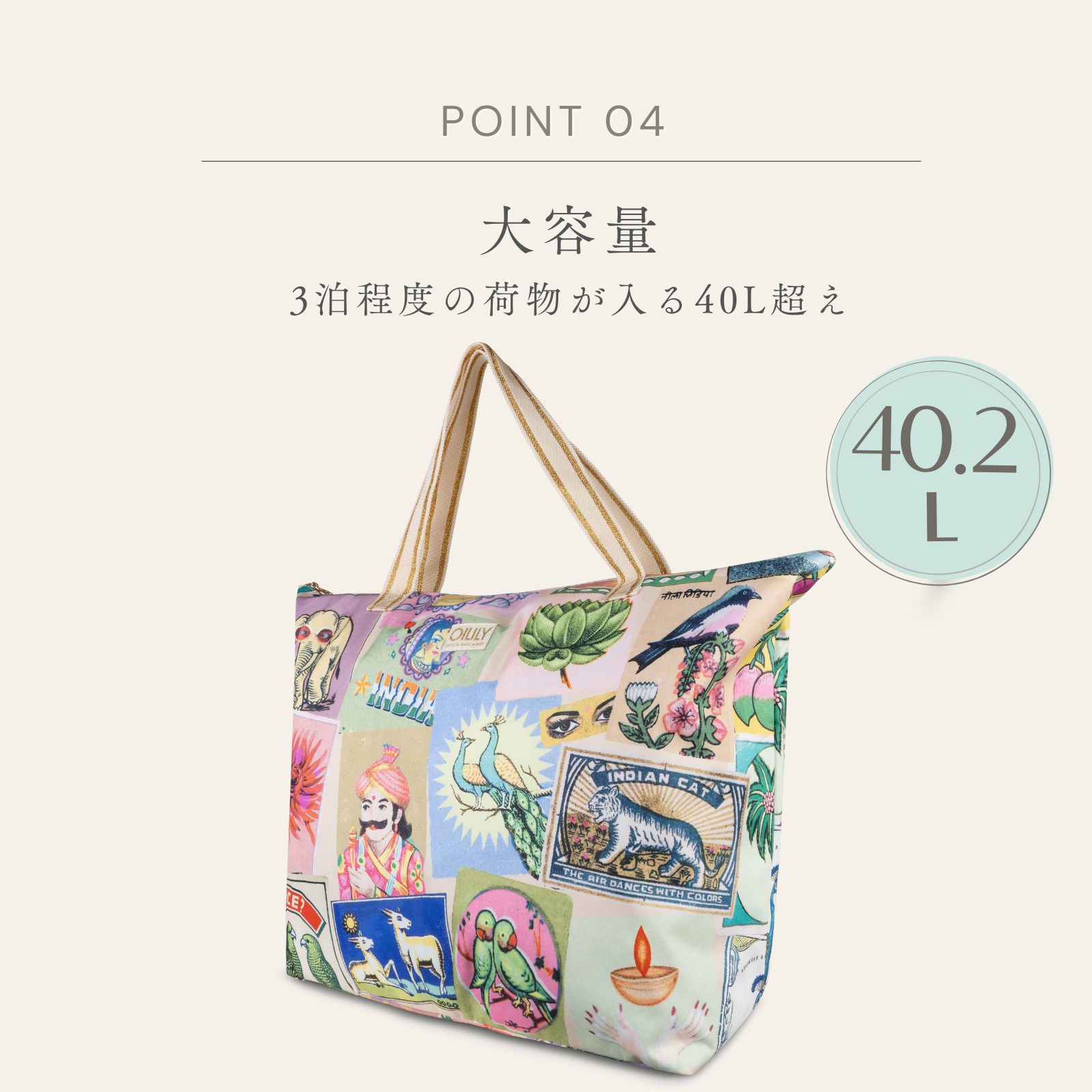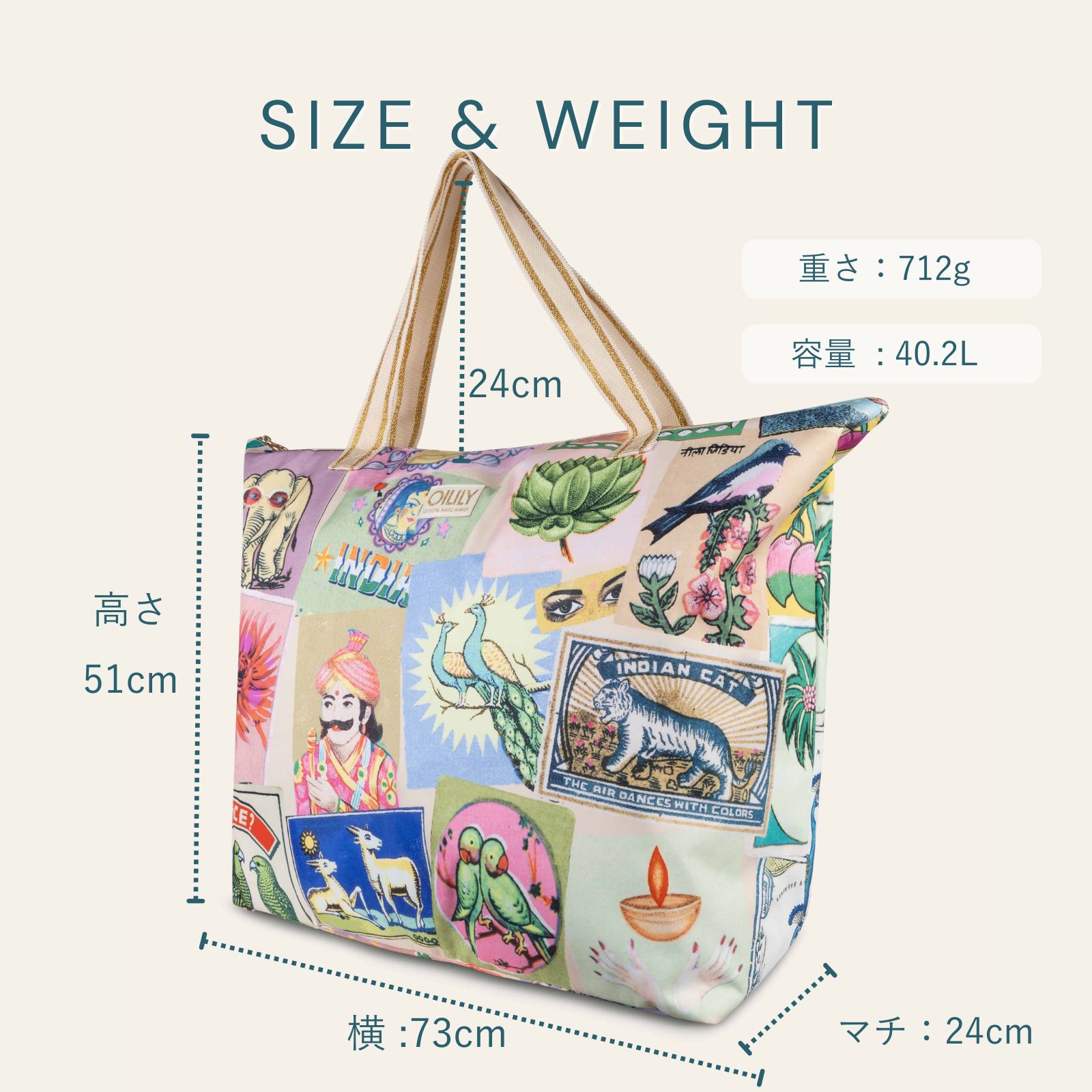 【oil1340】ビッグ ショッパー トートバッグ マハラジャ プリント XXLサイズ